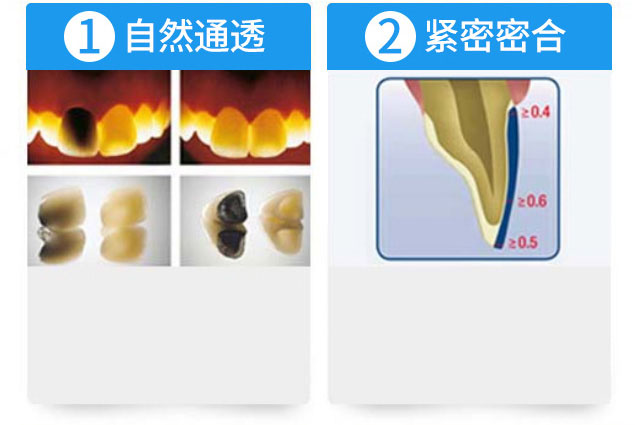 全瓷牙的内冠是瓷,是一种透明的骨架。它的层次、色泽接近真牙,保护牙龈。